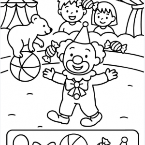 At first glance, this black and white illustration looks like a simple children’s coloring page. A cheerful clown stands in the center of a circus ring with…