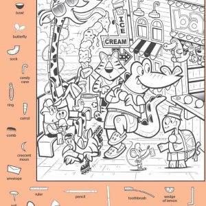 Find egg, bag, comb and apple.