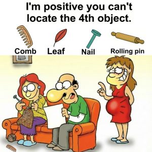 Find comb, leaf, nail and rolling pin.