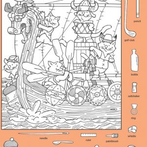 Find sailboat, hockey stick, ring and comb.