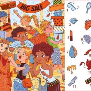At first glance, this colorful illustration looks like pure shopping chaos. A bold banner reading Big Sale hangs overhead. Shoppers rush through racks and displays. Arms stretch…