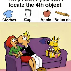 At first glance, this cartoon scene feels like a simple domestic moment. A couple sits on a bright orange couch. The woman knits calmly while the man…