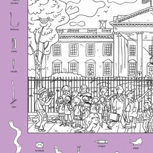 At first glance, this detailed black and white illustration looks like a cheerful school field trip. A group of children stands outside the White House, smiling as…