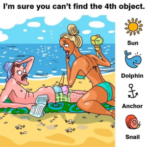 Find Sun, Dolphin, Anchor, Snail.