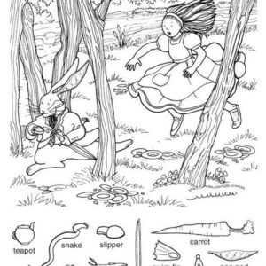 Find Carrot, Golf Club, Saucepan and Teacup.